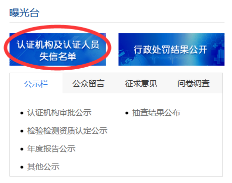 機(jī)構(gòu)曝光情況也參見(jiàn)國(guó)家認(rèn)證認(rèn)可委員會(huì)網(wǎng)站,如下圖: